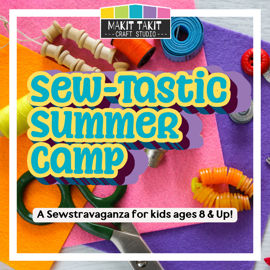 Sew-tastic is a camp for kids ages 8+. This is a very beginner friendly class. Campers will learn how to hand sew, beginning embroidery, make pom pom creatures, and eventually make their own masterpiece using our sewing machines. This is a great all-around camp that will give your budding fashion designers, fiber artists, and creative kids a good overview of the needle arts.